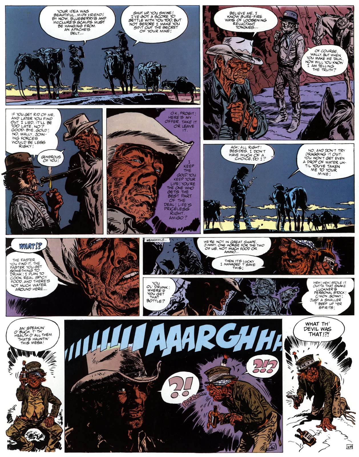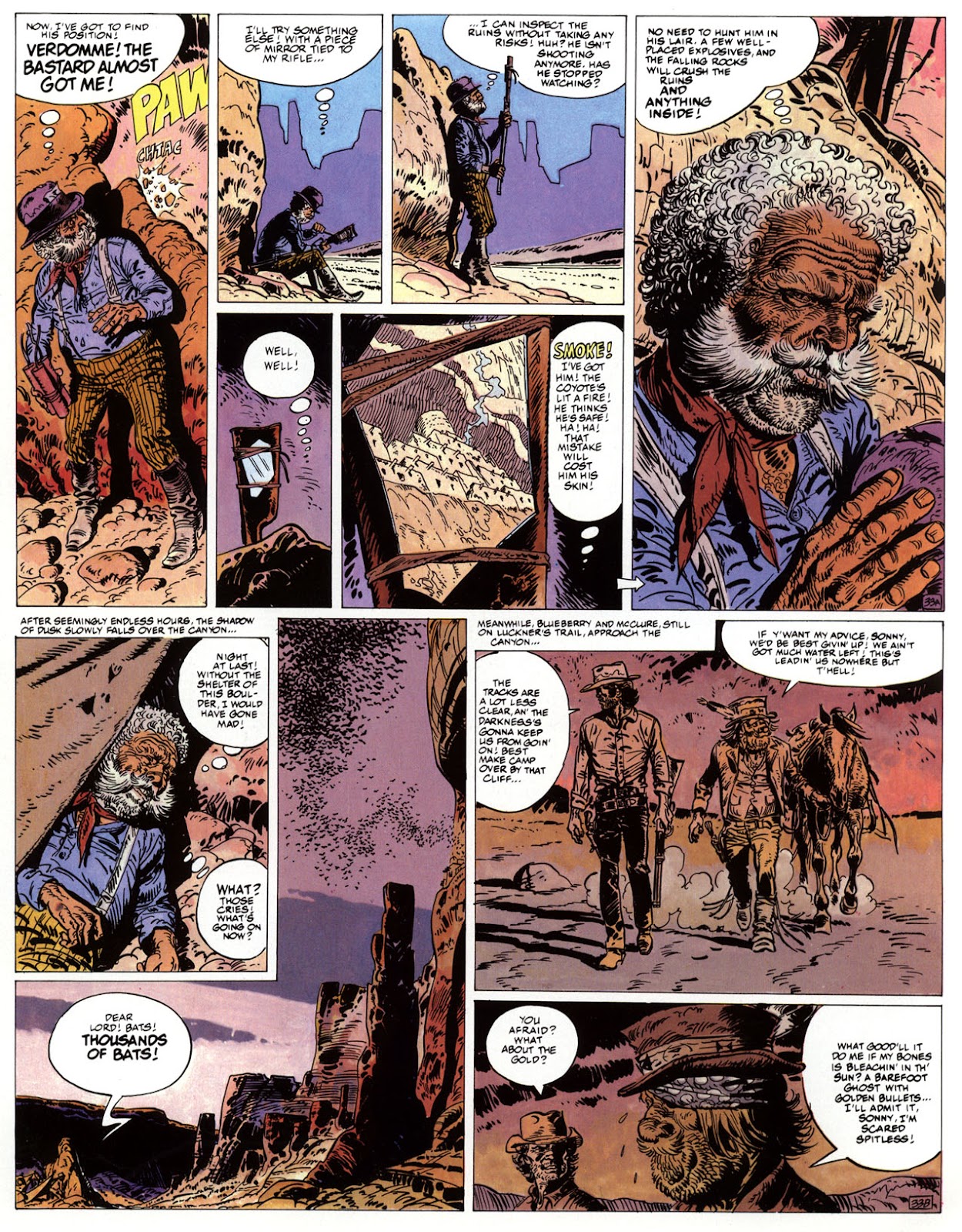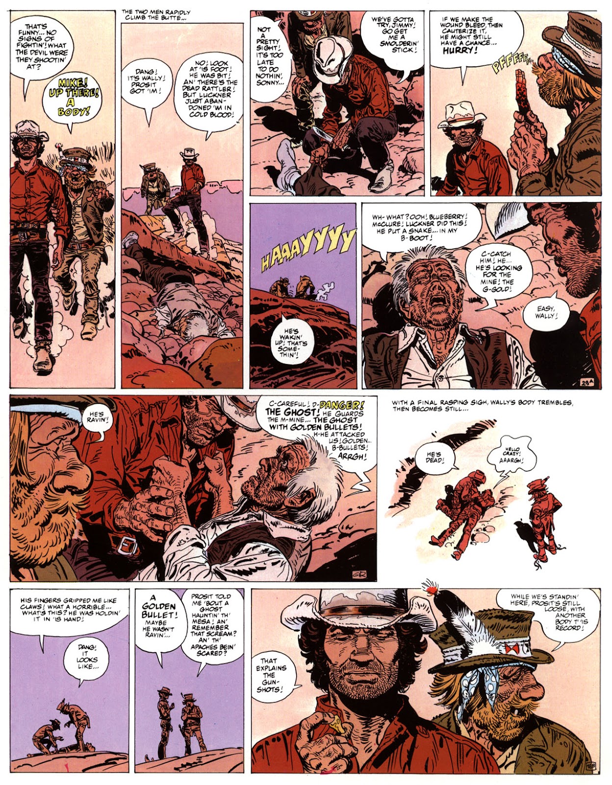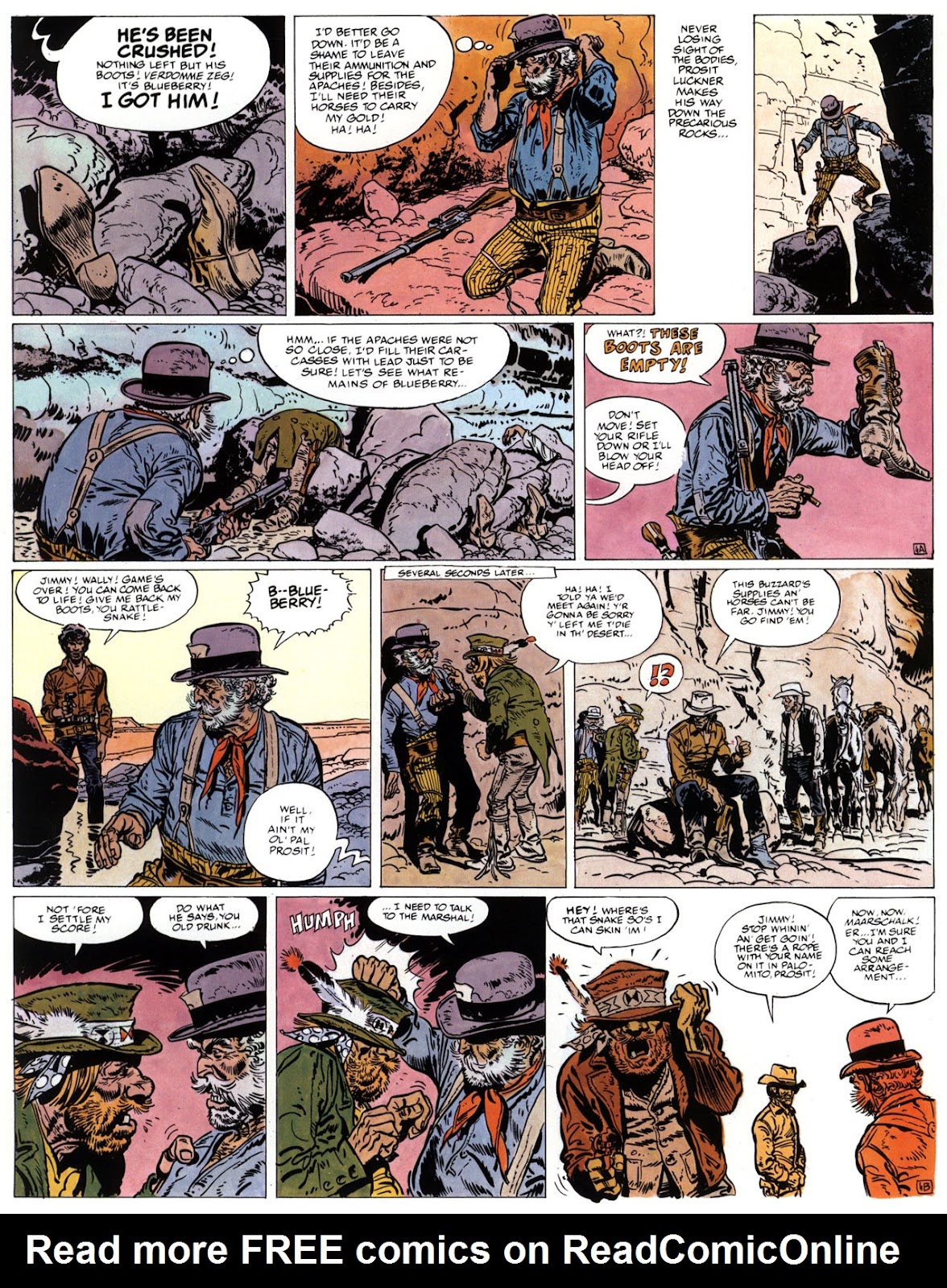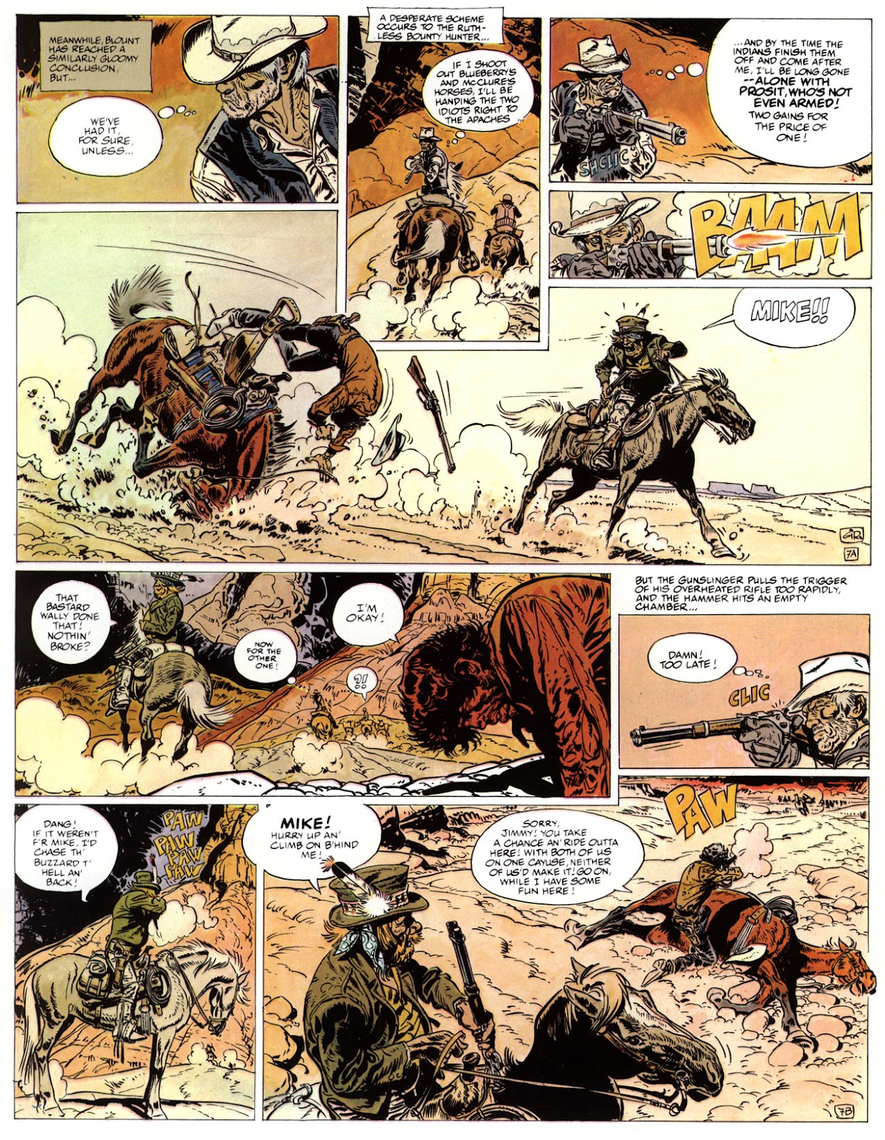 EACH OF THE CLICK THROUGH NUMBERS BELOW REPRESENT A PAGE IN THE EPIC GRAPHIC NOVEL OF MARSHAL BLUEBERRY BOOK 1, THE LOST DUTCHMAN'S MINE. CLICKING EACH INDIVIDUAL NUMBER WILL TAKE YOU TO THE CORRESPONDING PAGE, THUS ALLOWING YOU TO READ THE NOVEL PAGE BY PAGE START TO FINISH. EACH PAGE THAT COMES UP IS EXPANDABLE TO A LARGER SIZE BY CLICKING IT WITH YOUR MOUSE.