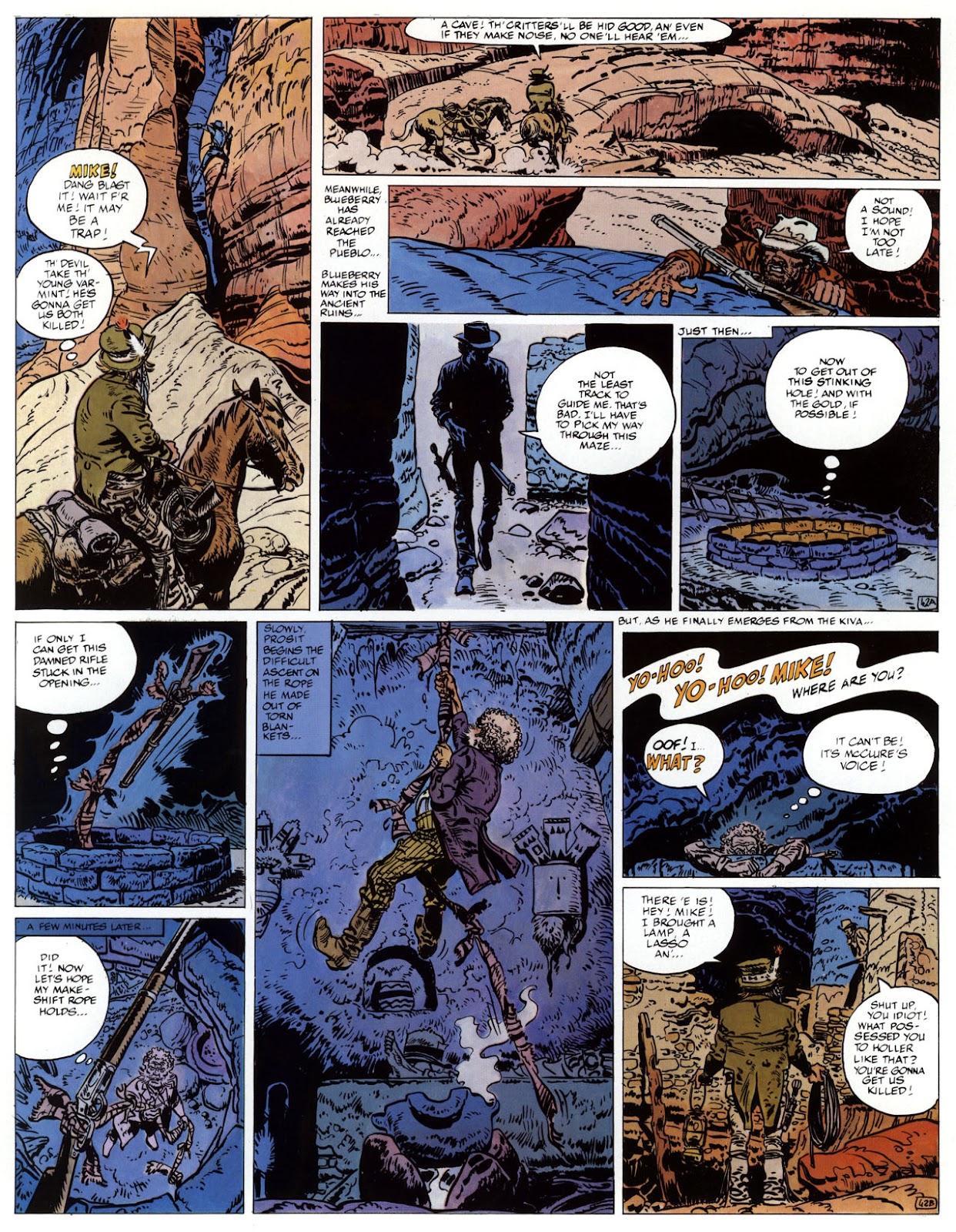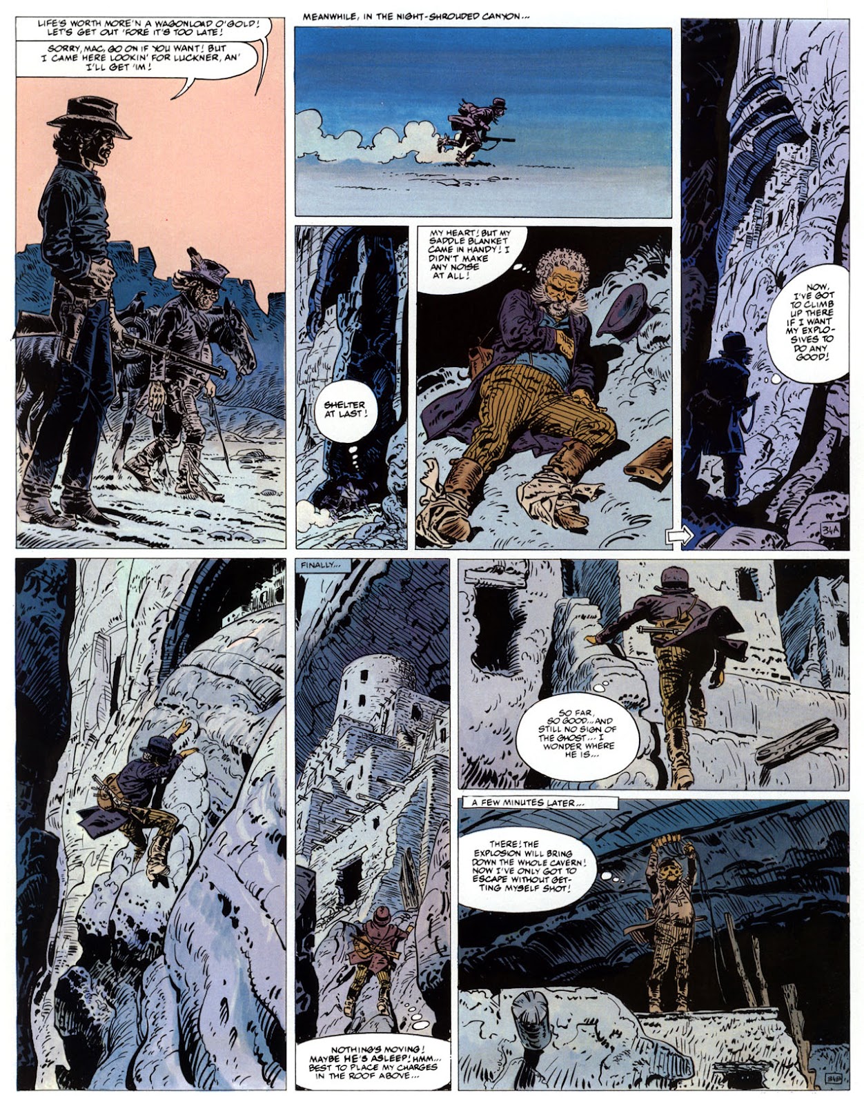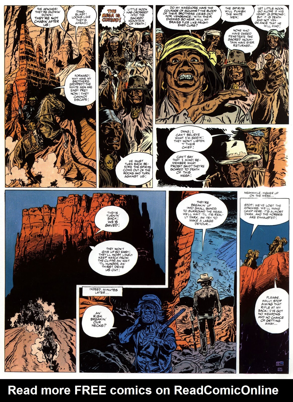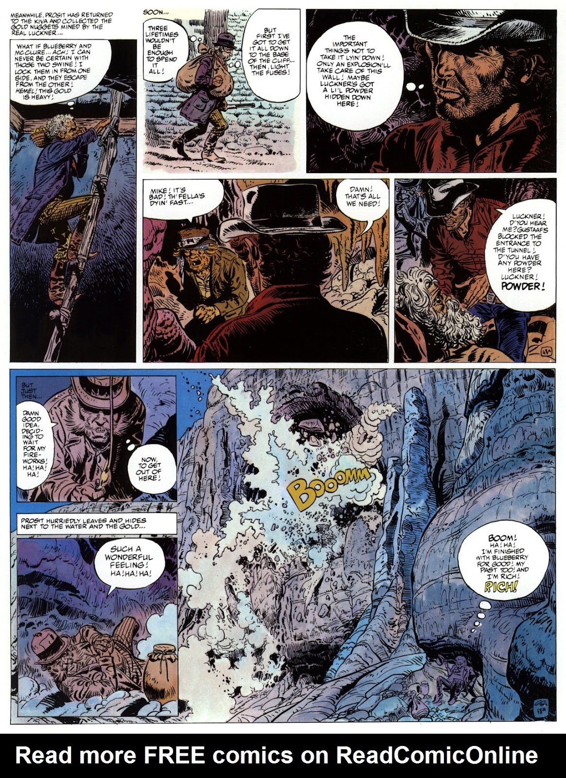 EACH OF THE CLICK THROUGH NUMBERS BELOW REPRESENT A PAGE IN THE EPIC GRAPHIC NOVEL OF MARSHAL BLUEBERRY BOOK 1, THE LOST DUTCHMAN'S MINE. CLICKING EACH INDIVIDUAL NUMBER WILL TAKE YOU TO THE CORRESPONDING PAGE, THUS ALLOWING YOU TO READ THE NOVEL PAGE BY PAGE START TO FINISH. EACH PAGE THAT COMES UP IS EXPANDABLE TO A LARGER SIZE BY CLICKING IT WITH YOUR MOUSE.