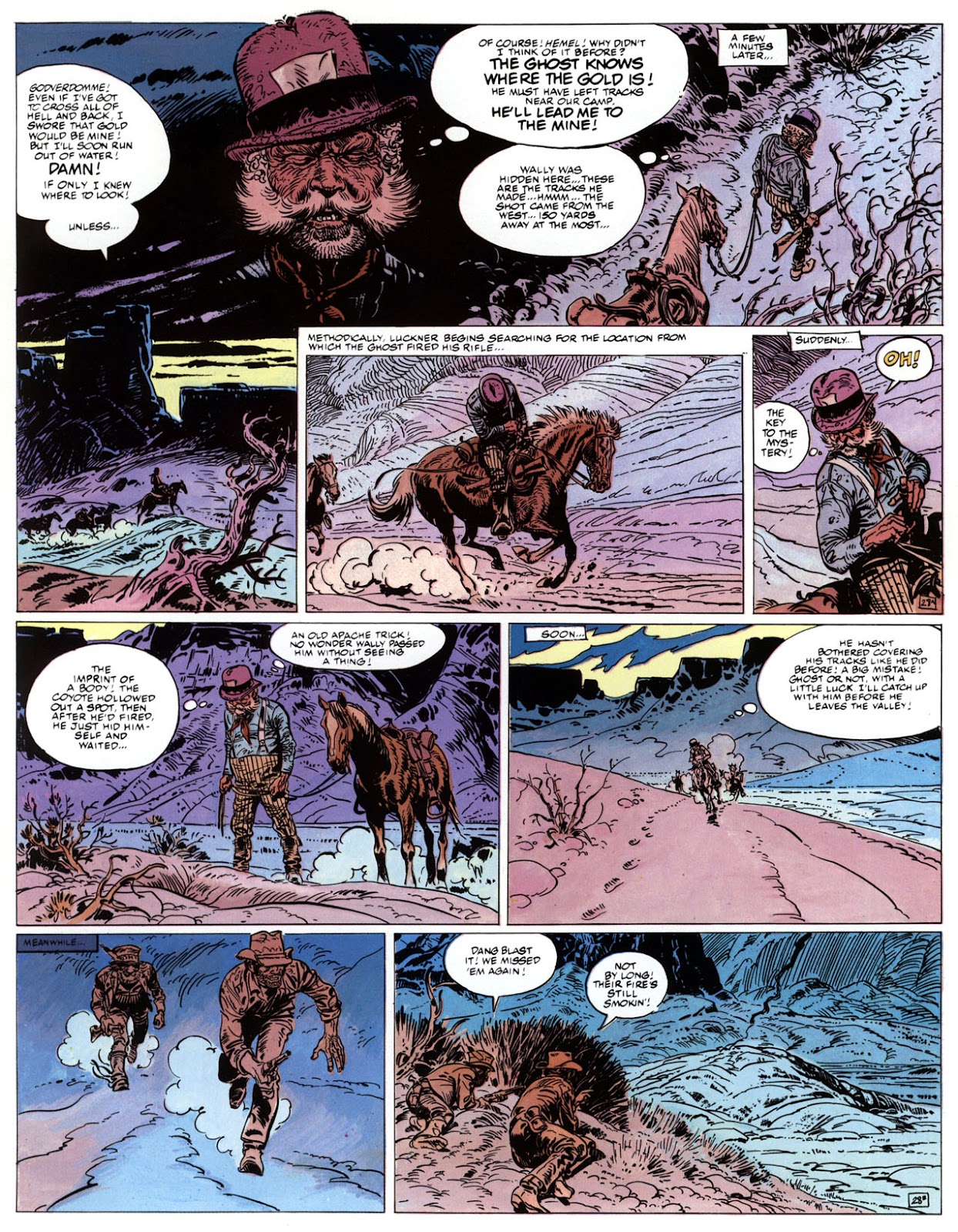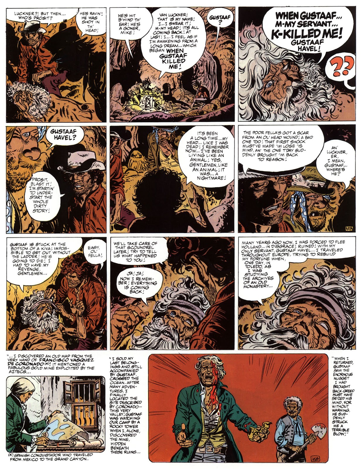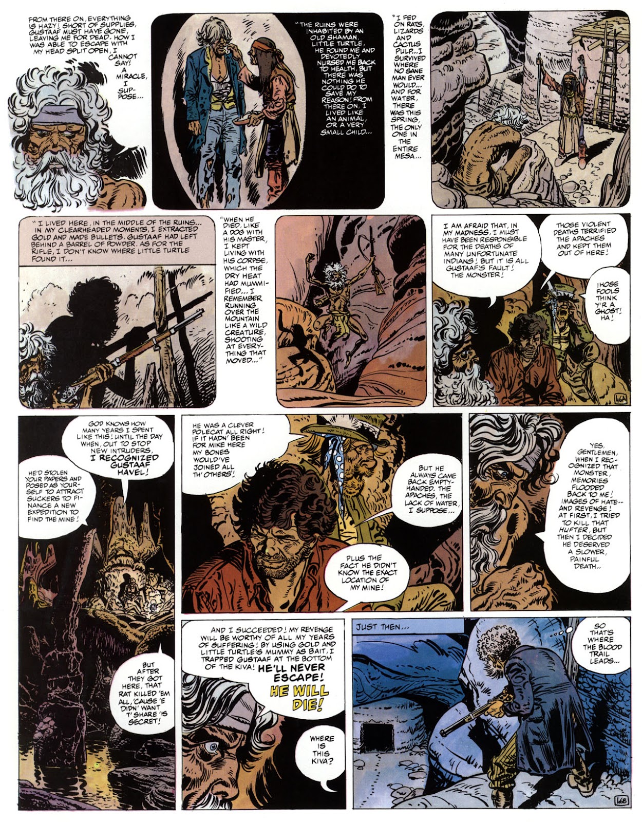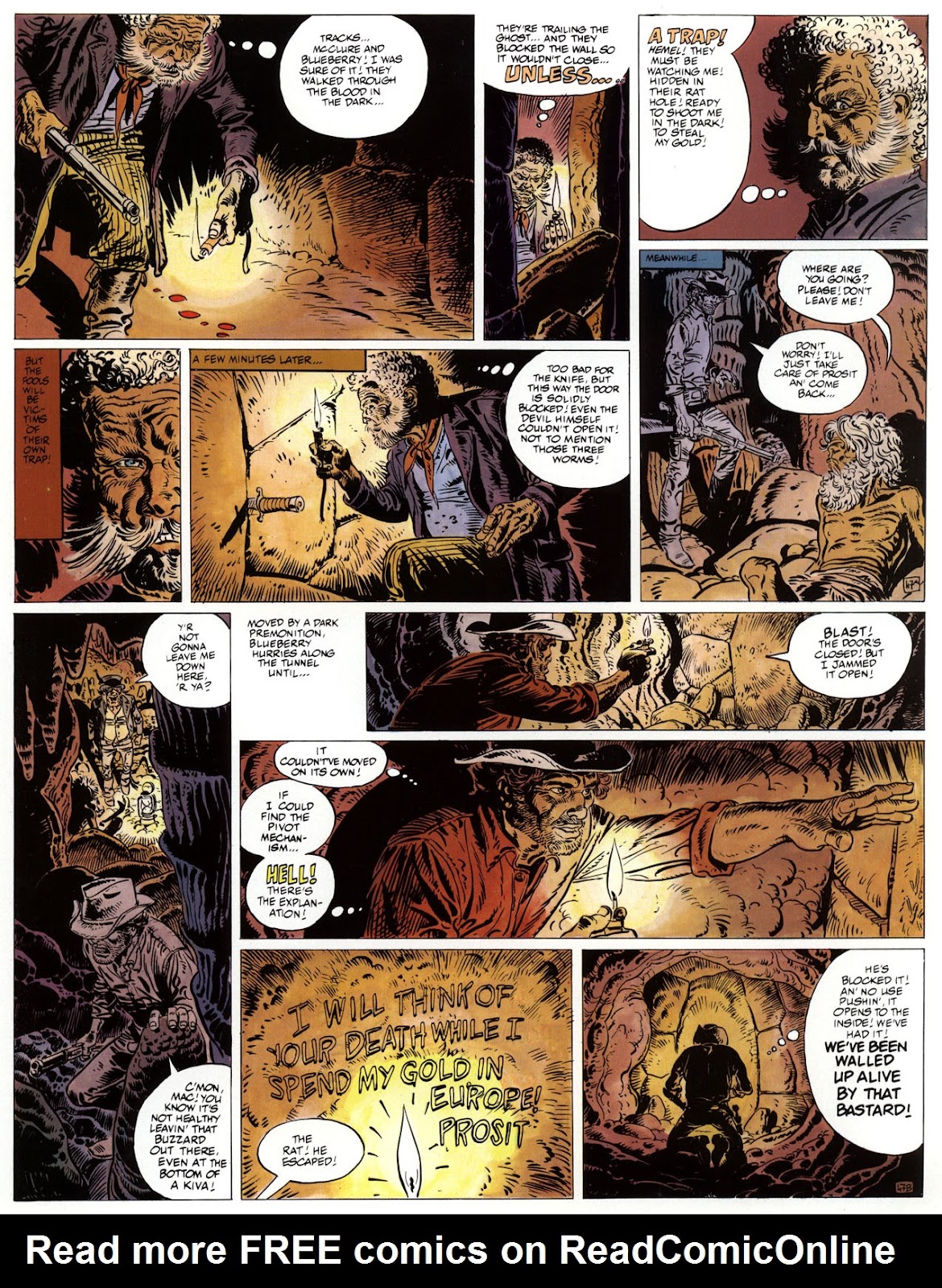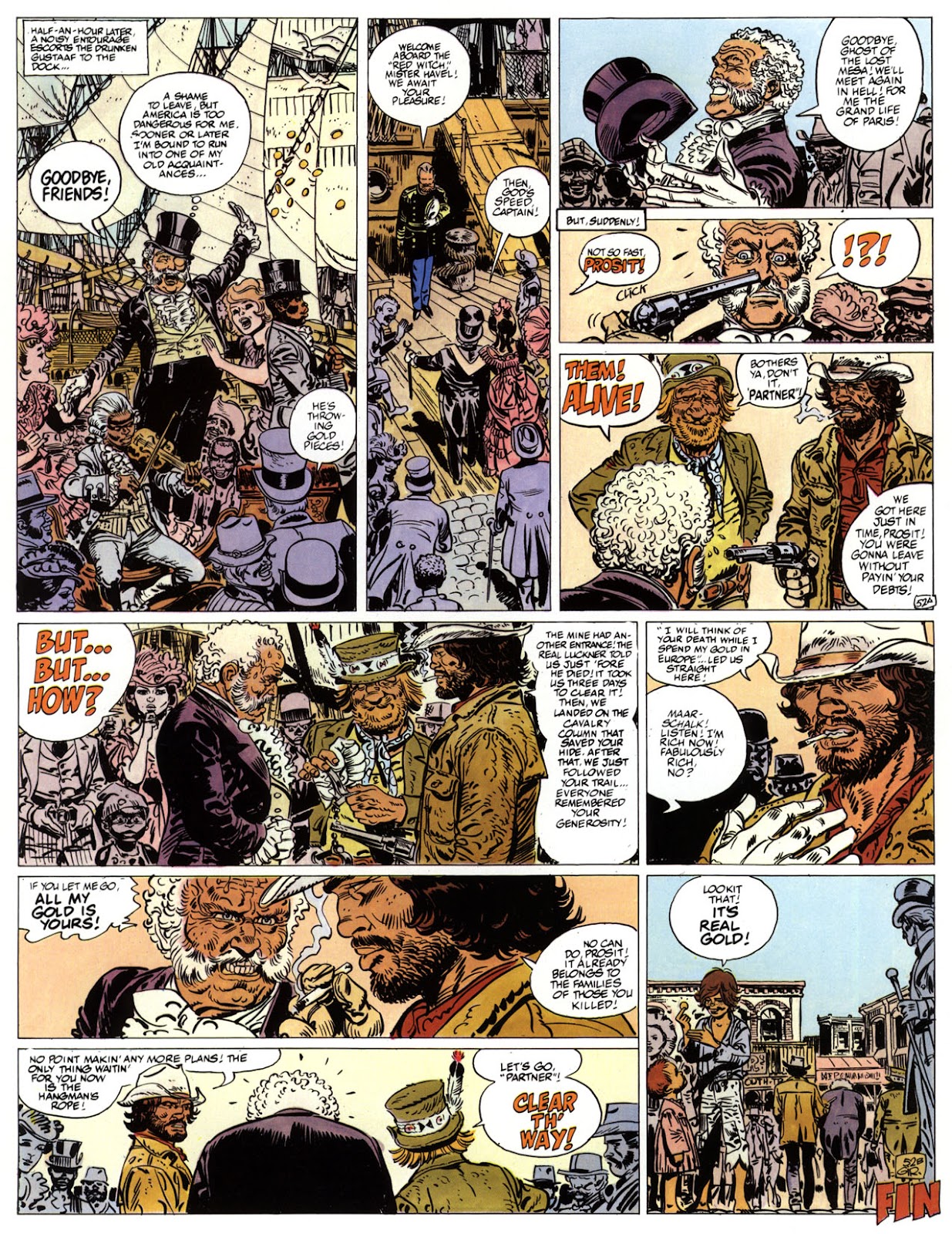 EACH OF THE CLICK THROUGH NUMBERS BELOW REPRESENT A PAGE IN THE EPIC GRAPHIC NOVEL OF MARSHAL BLUEBERRY BOOK 1, THE LOST DUTCHMAN'S MINE. CLICKING EACH INDIVIDUAL NUMBER WILL TAKE YOU TO THE CORRESPONDING PAGE, THUS ALLOWING YOU TO READ THE NOVEL PAGE BY PAGE START TO FINISH. EACH PAGE THAT COMES UP IS EXPANDABLE TO A LARGER SIZE BY CLICKING IT WITH YOUR MOUSE.