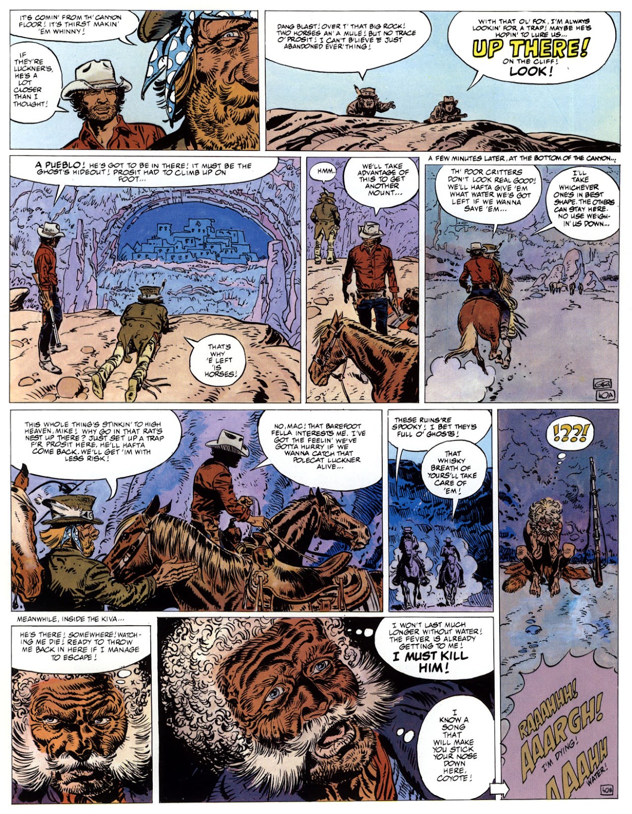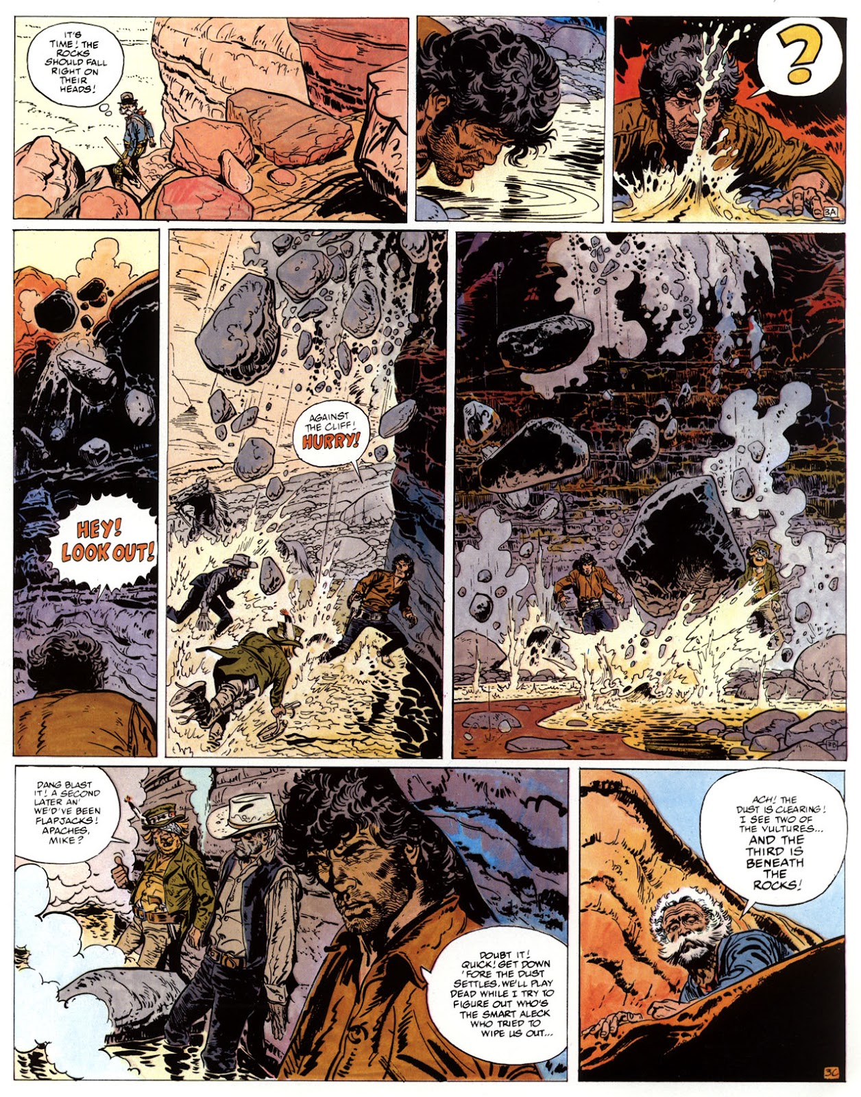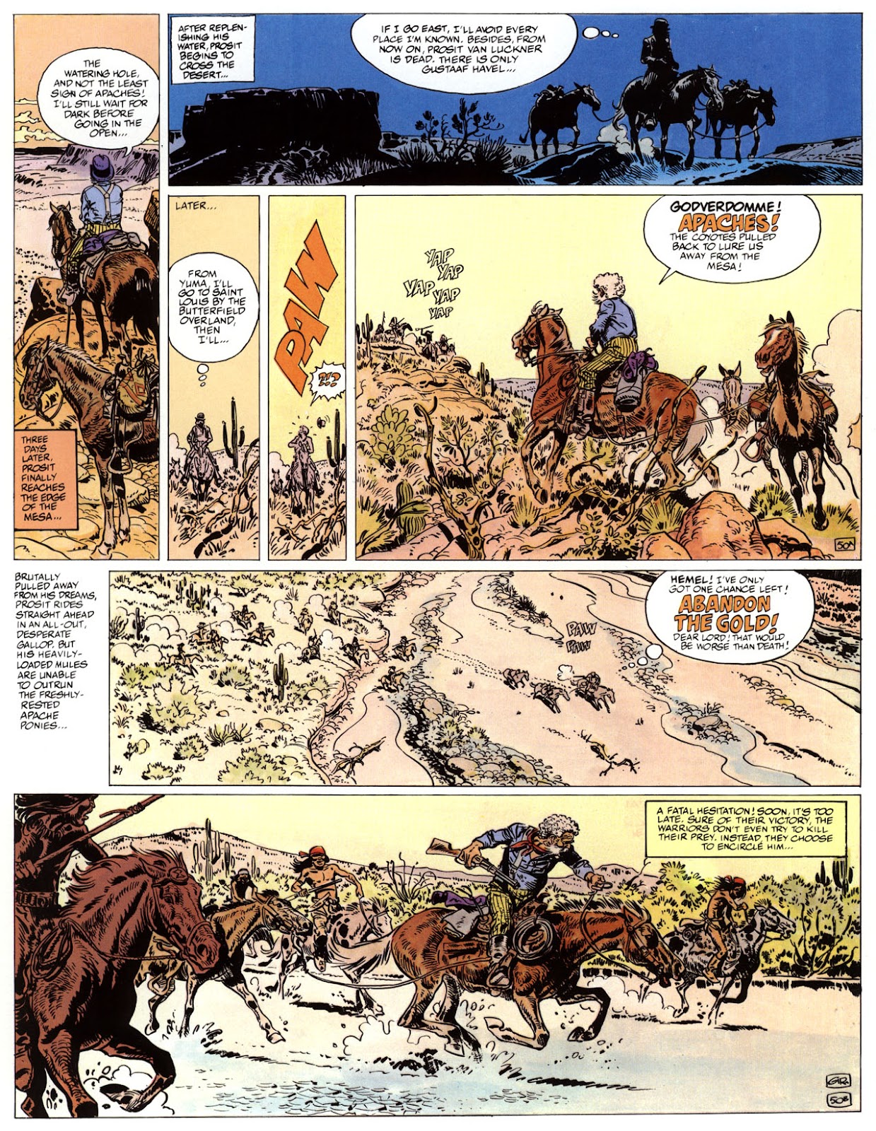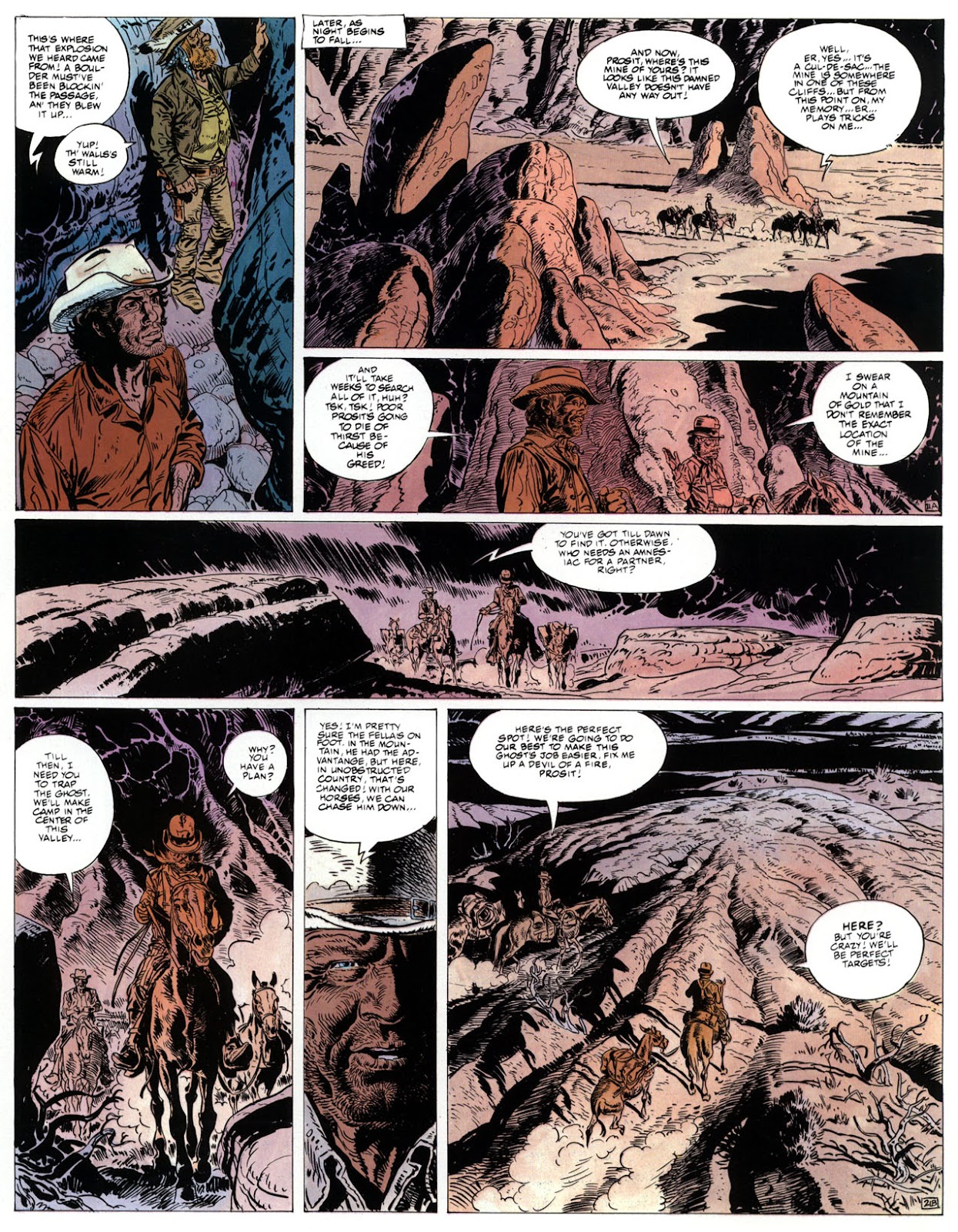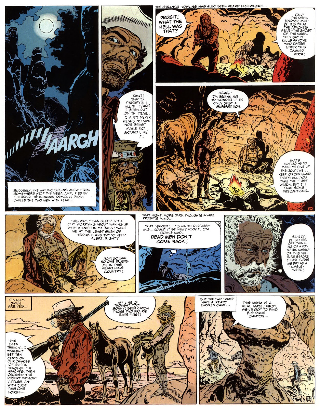 EACH OF THE CLICK THROUGH NUMBERS BELOW REPRESENT A PAGE IN THE EPIC GRAPHIC NOVEL OF MARSHAL BLUEBERRY BOOK 1, THE LOST DUTCHMAN'S MINE. CLICKING EACH INDIVIDUAL NUMBER WILL TAKE YOU TO THE CORRESPONDING PAGE, THUS ALLOWING YOU TO READ THE NOVEL PAGE BY PAGE START TO FINISH. EACH PAGE THAT COMES UP IS EXPANDABLE TO A LARGER SIZE BY CLICKING IT WITH YOUR MOUSE.
