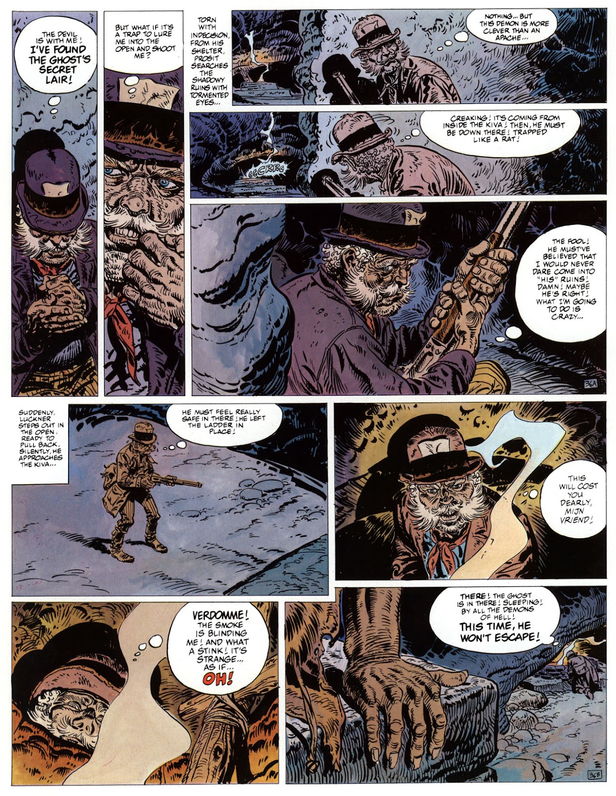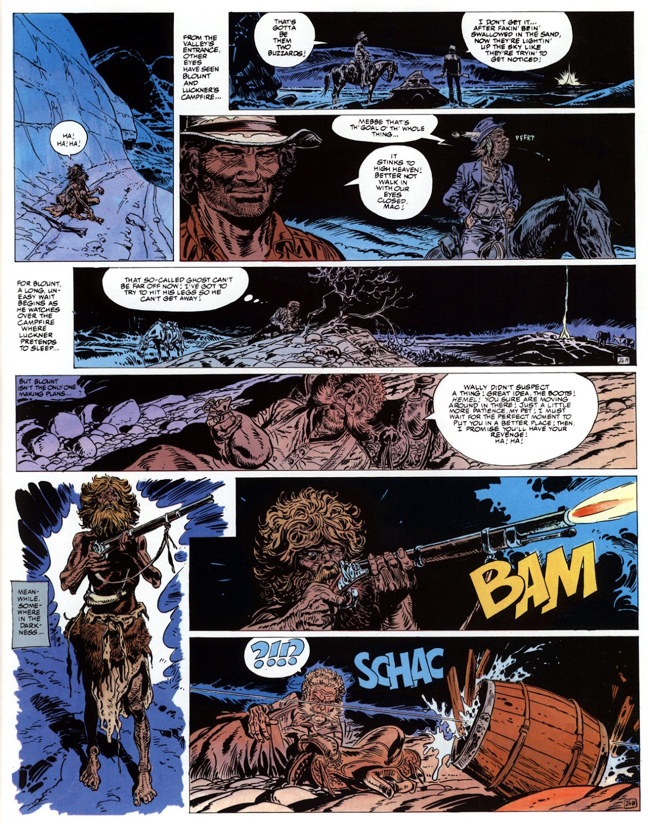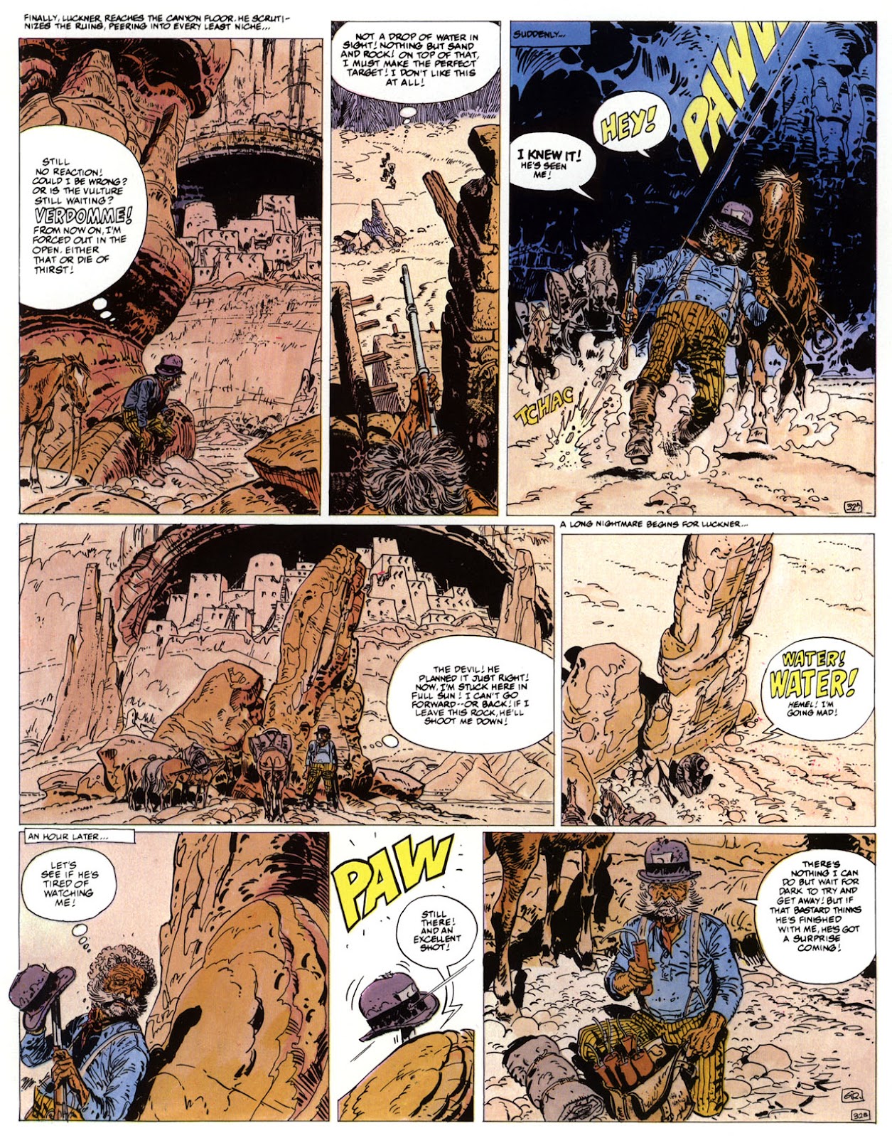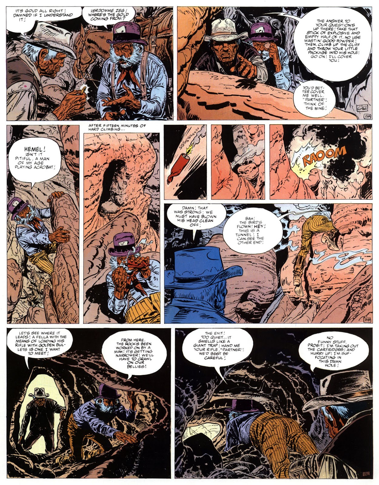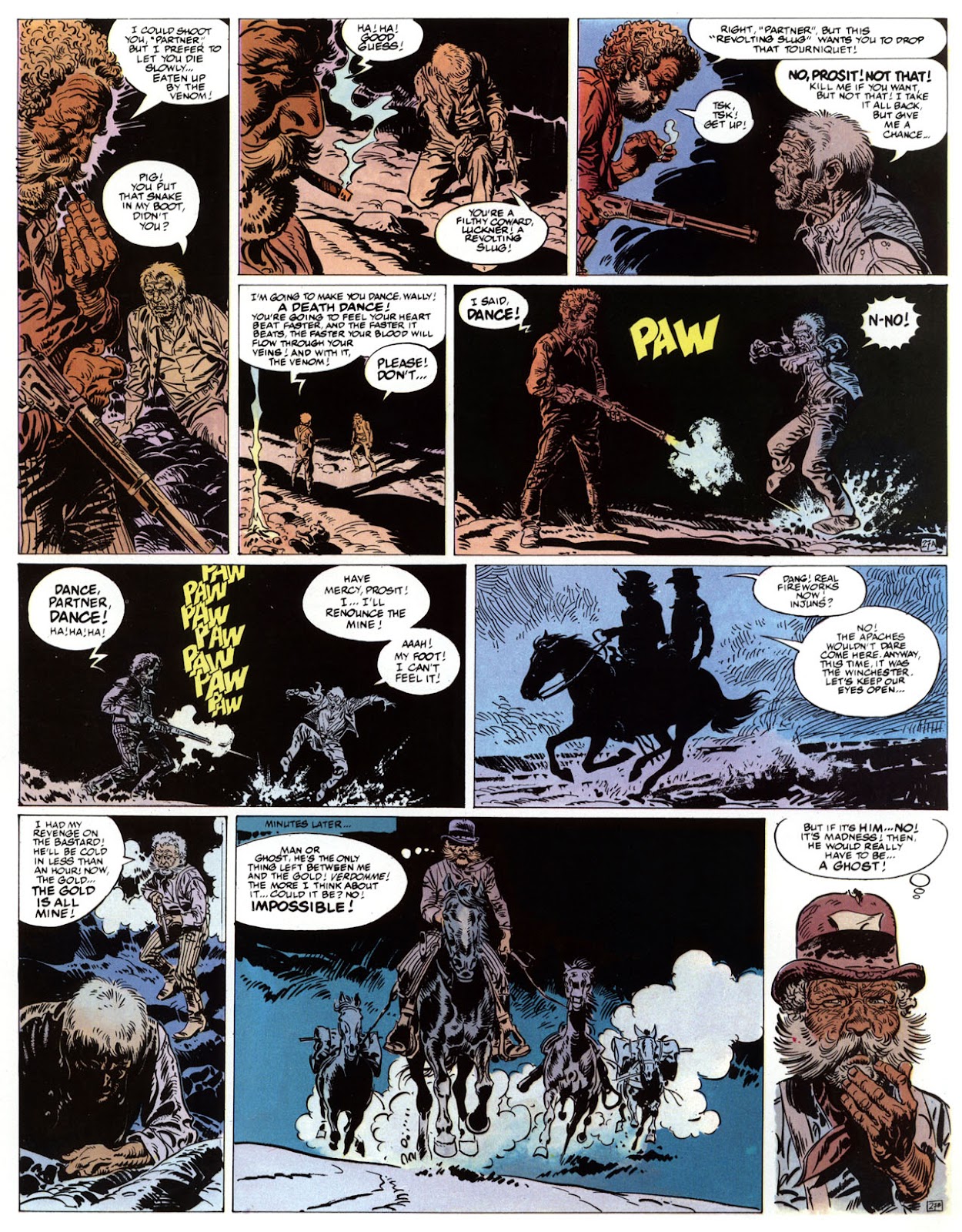 EACH OF THE CLICK THROUGH NUMBERS BELOW REPRESENT A PAGE IN THE EPIC GRAPHIC NOVEL OF MARSHAL BLUEBERRY BOOK 1, THE LOST DUTCHMAN'S MINE. CLICKING EACH INDIVIDUAL NUMBER WILL TAKE YOU TO THE CORRESPONDING PAGE, THUS ALLOWING YOU TO READ THE NOVEL PAGE BY PAGE START TO FINISH. EACH PAGE THAT COMES UP IS EXPANDABLE TO A LARGER SIZE BY CLICKING IT WITH YOUR MOUSE.