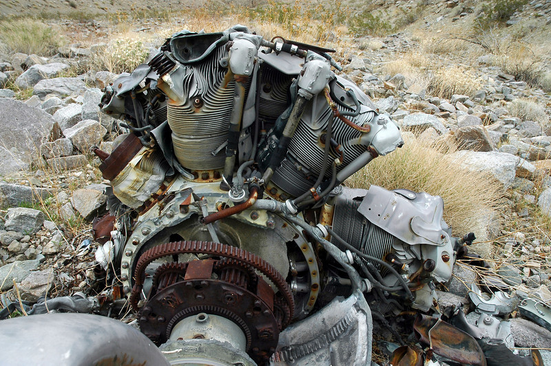 The bottom graphic shows all that remains of a Pratt & Whitney R-2800 Double Wasp aircraft engine that was thrown clear from a F4U Corsair that smashed into the high desert region of California's dry Mohave Desert. It is the same and only type power plant found in F6F Hellcats.