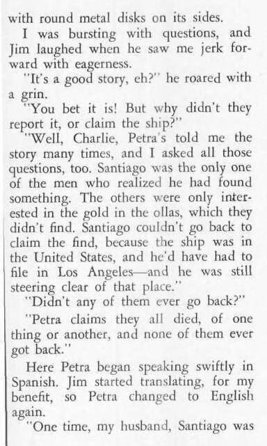 "I find a ship and stand on the front. It is ten feet high, and the back is buried in the sand."The comals was big round iron things on the sides. Bright and not rusted; not like any metal I have ever seen before."